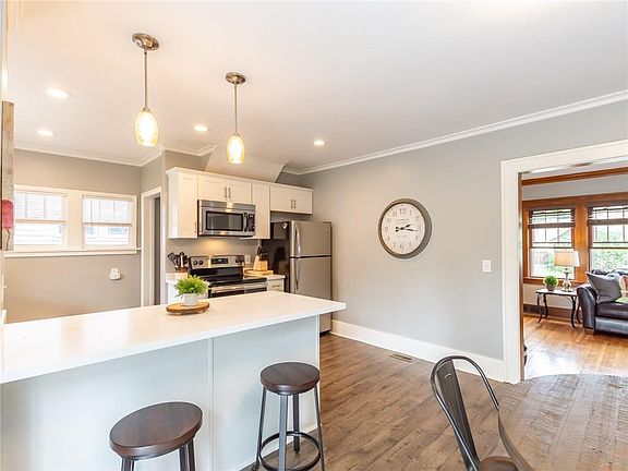 OPEN HOUSE CANCELED Expect to fall in love! Gorgeous light and bright kitchen with Quartz counters, new pull out drawers added to the interior of the cupboards for additional functionality. Stainless steel appliances are included, washer/dryer also. Open floor plan from kitchen into the dining and living room. Sliding glass doors lead to deck,partially fenced yard,garage with new opener.Leaded glass built-in bookcases add charm and character. Nest thermostat, gas fireplace w/ remote, gleaming hardwoods throughout. Both bathrooms have been renovated, tile shower,freshly painted interior.Low maintenance exterior vinyl siding, replacement windows throughout.New central A/C with warranty. Roof is 8 years old. Call today to schedule your showing!