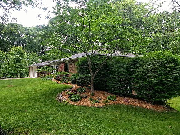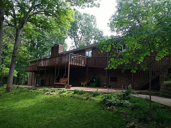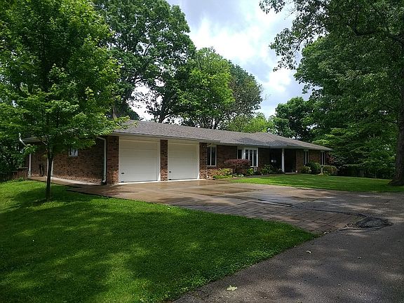 In a beautiful wooded park-like setting, this all brick walkout ranch is surrounded by nature with a secluded backyard just a few minutes from the Ozark city limits. Located on a 1.32 acre lot, it features a double garage, 2 living areas on the main level (one with a fireplace) as well as a rec room in the walkout basement with a wood burning stove. The kitchen has been remodeled and offers an abundance of cabinets, granite countertops, tile floors, and an open dining area with rustic accents. There is also an enormous utility room with more cabinets & countertops. This home is handicap accessible with wide halls, wide doorways and more. The spacious master suite features his and hers walk through closets and a roomy (roll in capable) shower. The hall bath can also be accessed through bedroom 2, which also has an exterior door to the balcony and a walk in closet. Bedroom 3 on the main level has a built-in desk and was used by the sellers as an office. There are spectacular views of Elk Valley from the large deck and a concrete sidewalk in the backyard spanning the entire length of the house. The finished basement has two bedrooms, a full bath, large storage areas, as well as accessibility to the tornado shelter. All utilities are underground including cable TV / high speed Internet access. There is also a 10’ x 16’ shed to house all your yard equipment.