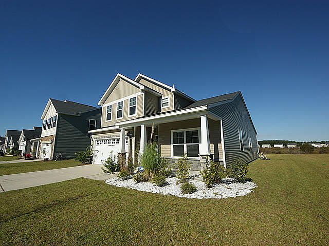 CANE BAY PLANTATION....ON THE WATER! This home is only 3 years old and looks like new! The nicest upgrade is the premium lot....overlooking a pond, the view is absolutely beautiful! No backing up to a neighbor with a privacy fence!! When you arrive, you will immediately notice the stone front upgrade which adds charm to the exterior. Upon entering the home, you will enjoy the flow of the hardwood floors throughout the downstairs except for the master bedroom (carpet) and half bath and laundry (tile)....all nice upgrades! The living room and dining room are open, divided only by columns. The kitchen is a chef's delight! A gas range, granite countertops, stainless appliances (frig stays) and recessed lighting. The kitchen is open to the family room and you can view the back yard and pond from your kitchen sink! The family room is large and will accommodate sectionals and big screen TVs. The master is conveniently located downstairs with window views of the pond. A separate tub and shower, ceramic tile flooring and a nice vanity make up the master bathroom. Also downstairs is a half bath and a laundry room. Venture upstairs and you will love the huge loft/great room which is centrally located and sure to be a favorite room in the house! Three bedrooms and a full bath complete the upstairs. Another favorite spot may be the screened porch that overlooks the pond....what a pretty setting....a great place to relax at the end of a long day. And a new fence has been installed....Great for children and pets! You'll love CANE BAY PLANTATION...schools and shopping within the neighborhood and just a quick trip to the Charleston area beaches, Boeing, and the charming low country! This home has been meticulously maintained...there is a current termite bond and quarterly pest control with Home Defense, a service contract on HVAC unit and a ADT security system. VACANT! CAN CLOSE QUICKLY!