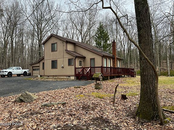 What a great place to call home. Convenient location for the commute. Excellent location for enjoying the POCONOS and all it has to offer (Shops, skiing, water parks, state parks and lakes. Plus much more) Nestled on 2.2 acres with nice privacy. Vaulted ceiling in the living room with two skylights and wood stove. Spacious country kitchen and best of all a large deck to enjoy the great outdoors.