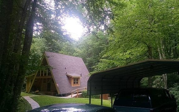 MOUNTAIN LIVING AT ITS BEST! No better mountain living than this totally refurbished A-Frame on a private drive surrounded by rhododendrons with a large creek just off the back covered deck. Private and Secluded, the pictures say it all. Current owners have maintained this home annually for over 30 years to make it the perfect vacation or full time residence for all seasons. Exterior walls and roof are double layered with extra insulation. The free-standing Vermont Castings wood stove in the living room has been outfitted with gas logs for trouble free heating should the power temporarily go off. Every sq.ft of this home has been optimized for extra storage space. The basement level has a large workshop for all those projects (or motorcycles) one cares to work on. This home is less than ten minutes to the gas station, grocery shopping, vegetable stand and the Highlands shopping center. For more information, contact Skip Wood at (828) 773-2073 (cell) or (828) 262-1990 (office).