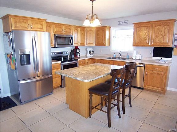 Meticulously kept inside and out! This custom built 1,664 square foot Ranch is bright and airy and boasts 3 nice bedrooms, 2 bathrooms a large great room with a gas fireplace that is open to a spacious eat-in kitchen with new stainless appliances and an island with an overhang and granite top. You'll also appreciate having a 1st floor laundry, a full basement that is perfect for finishing, a stone patio and a large rear deck with a retractable Sunsetter awning. Only 15 years old and OH, SO NICE! Call now for your private showing. STAR savings is $694 and is not reflected in taxes shown.