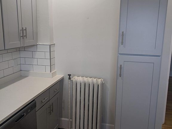 This one bedroom unit features restored original hardwood floors, 9 foot ceilings, recessed lighting throughout, and contemporary finishes. The kitchen is filled with stylish white quartz countertops, subway tile backsplash, chef style faucet, shaker style cabinetry, and all electric stainless steel appliance package including a dishwasher. The large open living room offers plenty of space to entertain and possesses a secluded corner perfect for a cozy home office. The apartment has a high efficiency electric AC unit to cool the space quickly in the warmer months and an additional electric heater to allow for full climate control throughout the year. The large bedroom has a ton of natural light and an oversized closet for storage. Lastly the bathroom has been thoughtfully redesigned and features a full tub and subway tile shower all the way to the ceiling. The tile floor has been restored and new stylish vanities and fixtures have been installed. Heat and hot water are both included in the rent! This is a non-smoking building. This is a pet friendly building and we welcome animals of all shapes and sizes up to 40 lbs. Off-street parking is included in the rent. Storage is available on site for an additional $40/month. Heat is included in the rent! Tenant is responsible for electric and wifi. A 12 month lease is required. Background and credit checks will be conducted for potential tenants. We require 3x income to rent to be considered for tenancy. Please submit an application and we will schedule a showing with you ASAP!
