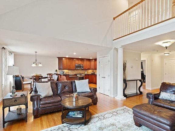BRIGHT & SPACIOUS and rarely available 2 bed, 2 1/2 bath, 2 car garage Townhome at The Commons at Elmwood Village in a wonderful North Reading location! The first level open floor plan is perfect for entertaining. A gorgeous kitchen includes granite counters with bar seating flows to a generous dining area with. The sky-lit living room with cathedral ceiling, hardwood floors and gas fireplace is such an inviting space! Additional loft, bedroom, bathroom & laundry on the second level. The lower level has 540 sq ft of finished versatile space leading to deck. Professionally managed complex with the size and feel of a single family without the maintenance!