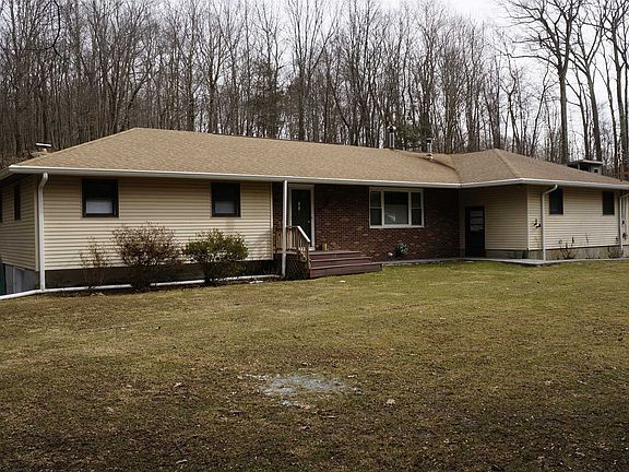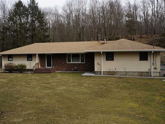 Enjoy One Level Living in a Country Setting in this Expansive Ranch style home - Incredible Kitchen featuring: Granite Counter Tops, Stainless Steel Appliances with Double Wall Ovens & Cook Top, Soft Close Cabinets & Drawers, Tiled Back Splash, and a Peninsula Island with a Breakfast Bar - A Lovely Eat-In Kitchen Nook with a Bay Window fills the space with Natural Light - Large Living Room is Warm and Inviting with a Picture Window and a Wood Stove surrounded by a Brick Accent Wall - Formal Dining Room with a Sliding Glass Door leading to the Back Yard - Covered Patio makes for a great place to BBQ and Relax - First Floor Laundry Room is conveniently located with an adjacent Mud Room and a Half Bath - Luxurious Bathroom offers a Vanity with Double Sinks, a Soaking Tub, and a Tiled Shower with a Bench Seat and a Multi-Function Shower Panel that has a Rain Shower Head and 6 Body Sprays - Other Special features include: Gorgeous Hardwood Floors, Central Vacuum, Recessed Lighting throughout, Wide Trim Moldings, Pocket Doors, and more - Basement provides many possibilities and offers a Stone Fireplace - The lower level has both Interior access and a Separate Entrance with a Sliding Glass Door to a Private Patio - 3.46 Acres where you can Enjoy and Explore the Outdoors with recreation, hiking and trails - The property is Landscaped with Perennial Plantings, Brick Paver Walkways, and Rock Outcroppings that add to the visual interest - Beautiful Stone Retaining Wall and Stone Stairs - Plenty of Parking with a spacious Garage and large Driveway - Located within a USDA Loan Eligible area, allowing for 100% Mortgage Financing - Low Taxes