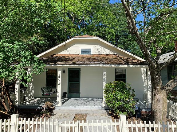 Darling bungalow in one of the most popular in-town neighborhoods features a light-filled kitchen with lots of storage space, guest bath with antique claw-foot tub and skylight, sunny master bedroom with recently renovated full bath, sophisticated dining rm with custom built-in bookshelves and cabinets, and hardwood floors. House sits far from the street, with a fenced-in front courtyard and rocking-chair front porch. Fantastic, large backyard backs up to Cabbage-town Park and features a 3-tiered deck, great for outdoor living. Tenant responsible for all utilities and yard.