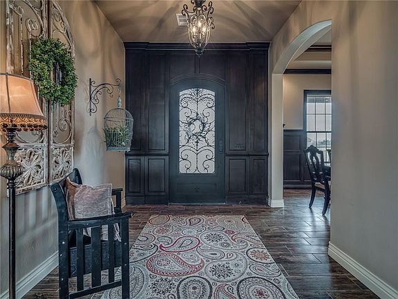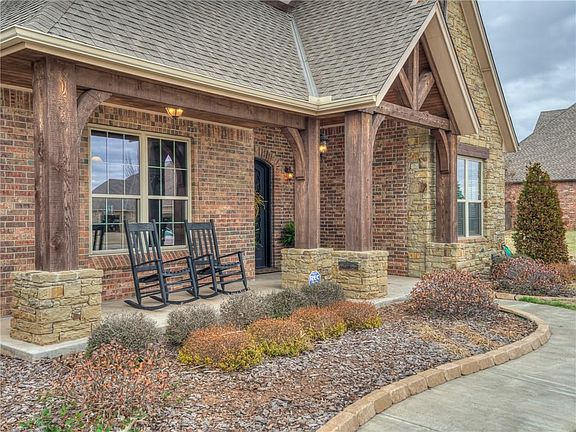 Quiet living only minutes from Norman! This exquisitely crafted custom home sits on 0.82 acre in Goldsby's peaceful Sunset Ridge Estates. Oozing with curb appeal, the impressive landscaping, timeless exterior design, & relaxing sitting porch greet you upon arrival. Stepping inside, you'll discover a gorgeous open floor plan, designer kitchen, fantastic owner's suite, & an oversized laundry room. This home also features an office nook, formal dining area, & 4 downstairs bedrooms that ALL have private bathrooms! You will never lack for flex-space with MULTIPLE rooms upstairs with potential for a 5th bedroom, home gym, or home theater. The supersized backyard is perfect for summer fun - there's even a half bath off the patio & abundant space for a future pool! This home has everything you need & want - sprinkler system, security system, storm shelter, spray foam insulation, tankless hot water heaters, & so much more! Norman schools!