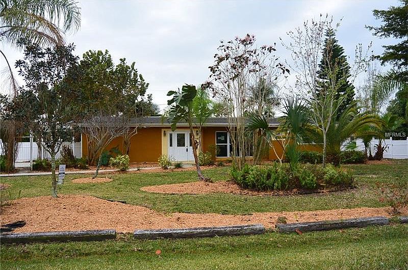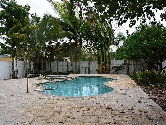 Looking for a tropical paradise? You will find it in the backyard of this 2 bedroom one and a half bath home. Situated on 2 lots, the large fenced yard offers plenty of privacy. Mature, lush landscaping surrounds the gorgeous open pool with spa and pavered deck. This oasis also has a koi pond. A screened lanai and florida room offer additional areas for entertaining and enjoying the yard. Back inside the home, you will find tile floors in living areas, carpet in bedrooms and a kitchen that is ready for your customization. There is also a bonus room with French doors that could easily e a large master bedroom. Sewers are being installed in this area.Located minutes from shopping and Cultural Center.
