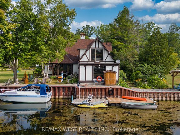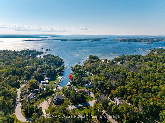 Unlimited Possibilities! Waterfront property on Georgian Bay with access to all the Great Lakes, the Atlantic Ocean, and beyond! This 2000 sq ft Tudor home meets so many needs with its sheltered dockage. This fully finished home features 3 large bedrooms, one ideal as a separate in-law suite, and a large detached garage with potential for an accessory dwelling unit for additional rental space or living quarters. A Bunkie-style fully powered office area is also on the property. Ample parking and 75 feet of waterfront make this home a must-see to fully appreciate its unique features.