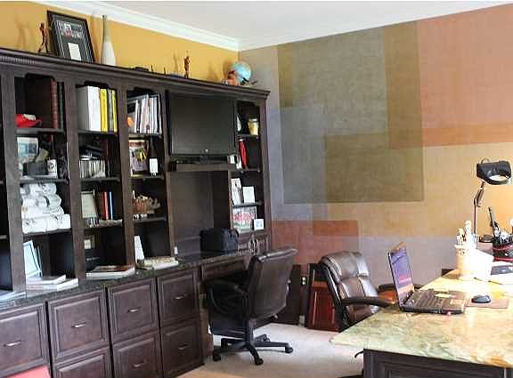 A Stunning fully detached 2 story brick and vinyl home that is situated on a quiet tree-lined golf course lot and offers million dollar views of the golf course (11th Green and 12th Tee) and private pond. This Remarkable home offers 4 large bedrooms upstairs (FROG is considered the 4th bedroom) including the spacious master bedroom suite offering trey ceilings, a huge walk-in closet, master bathroom with double vanities, oversized separate shower and a large soaking tub. The main floor with a dramatic foyer (18Ft Ceiling) offers several large rooms with selected wood flooring and authentic crown molding, including the Charming Formal Dining Room with crafted wains coating, crown molding and valuable built-in cabinets, a private office with a Distinctive ceiling and crown molding, a large