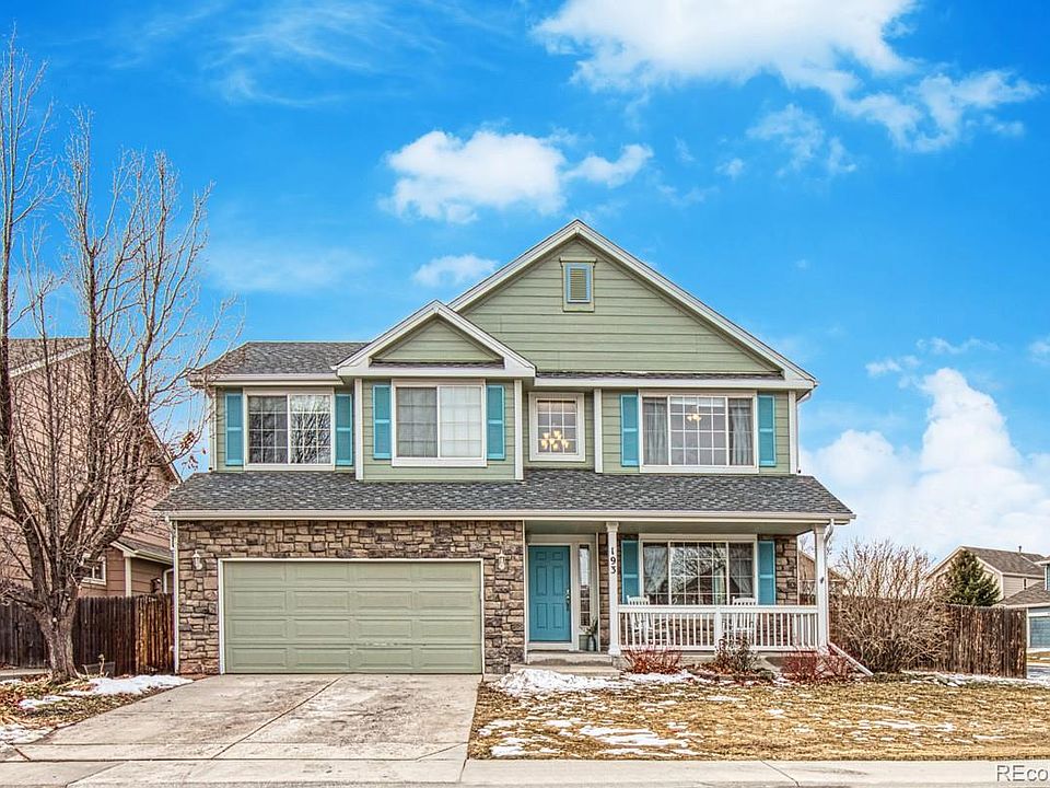 Gorgeous 5 bedroom, 4 bathroom corner lot home in beautiful Castle Rock! Open concept living space, living room with gas fireplace, dining, and eat in breakfast bar area. The spacious kitchen features stainless steel appliances, ample granite countertops, and newly refreshed cabinetry. Large main level office perfect for working from home. Primary Bedroom with lovely natural light, walk-in closet, luxurious en suite is warm and inviting with vaulted ceilings. Three other bedrooms up with full hall bath. Laundry/mud room off the garage makes for easy living. Impressive finished basement with high ceilings, 5th bedroom and 3/4 bath. 2 car attached garage with high ceilings. Beautiful covered front porch and spacious backyard with patio to enjoy the Colorado sunshine. Walk to the amazing community pool and neighborhood park in minutes!!