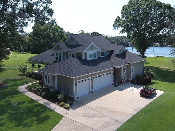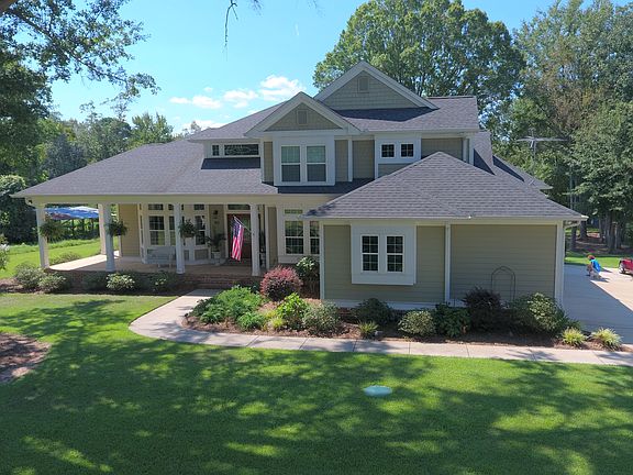 This is a rare opportunity to own a beautiful nearly 3000 sq-ft custom built Lakefront Craftsman Style Home with over 1 acre of land, approx 155 ft of direct waterfront access, & your own covered boat dock. Home has an open floor plan & far too many upgrades to list here. There is almost 1000 sq ft covered front porch & a screened in porch that has stamped concrete & also a back deck with a view of the lake. Fenced in backyard w/ a brick patio & fire pit. Home features crown molding, a stained glass front door, engineered hardwood floors, an oak staircase w/ rod iron railing, master on main floor w/ 3 bedrooms plus a bonus room, & an office. Gourmet kitchen has granite counter tops & all of the stainless steel appliances convey with the home. There is also a storage shed, a kayak rack, and a 30 amp RV hook up. Beautiful views of the lake from the eat in kitchen, dining room, owners suite & owners bath. Call to schedule your appointment to see this beautiful home today!