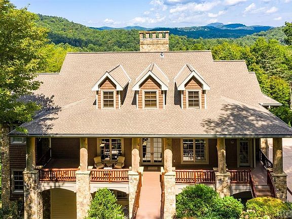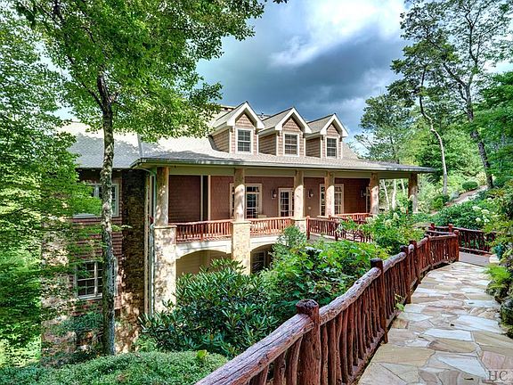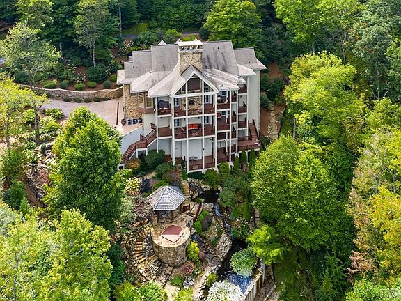 Amazing estate with 4 bedrooms, bonus rooms and 8.5 baths is the finest Highlands has to offer. Multi level decks have spectacular views and main level deck has outdoor fireplace. The Great Room reflects that of the Biltmore Estate, with large antique timbers stylishly woven into the design. Magnificent imported European mantle adorns the great room fireplace. Stunning great room chandelier has remote lowering. Formal dining room and study with full bath both feature fantastic artisan inlaid flooring. The gourmet kitchen is perfect for the chef of the family, featuring Ambrosia Maple cabinetry, stainless appliances, wet bar, cook island with gas cook top, built in wine cooler and separate catering entrance through large laundry room with pet shower and pet friendly design. The master suite on main level, features separate 'his' and 'hers' master baths, jetted tub, adjoining walk through shower, and heated towel racks. French doors in master suite lead to covered deck with spectacular views. 3 level glass elevator with artwork access two large guest suites each with private baths on upper level and additional lower level guest suite featuring double-sized-walk-in shower with built-in bench, body shower sprayers, rain head fixture and wet bar. Lower level also features Spa/Exercise room with separate laundry. Lower level living room has floor to ceiling stone fireplace and wet bar. The lowest level is a complete and beautifully furnished apartment with private entrance, full kitchen and access to private balconies and more spectacular views! The grounds of this home are equally stunning with 3 cascading waterfalls, Koi ponds, pond side hot tub and gazebo, perfect for relaxing and enjoying outdoor mountain living! Low maintenance native landscaping with rhododendrons, ferns, specimen trees and hydrangeas highlight the gorgeous rock walls and footpaths. Surround sound, 2 car garage and heated driveway. This home is over the top and a must see!!!