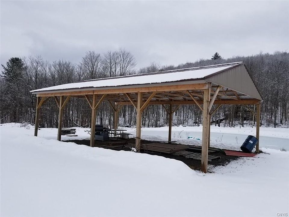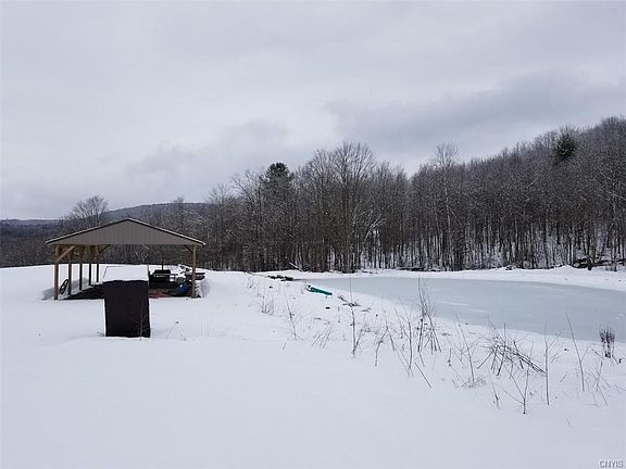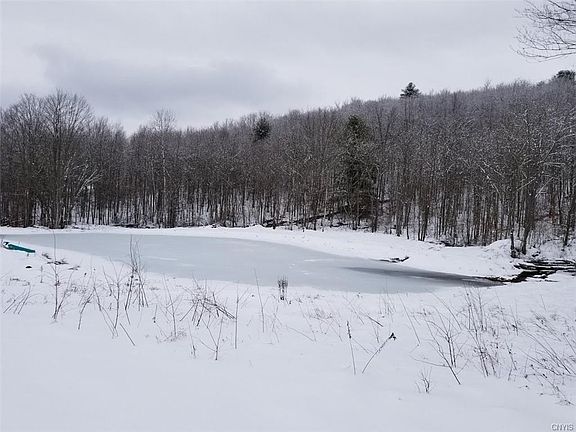 Located on Hubby Road which is a very quiet dirt road in the Town of Richford. Located both sides of the road. Hubby Creek flows the entire length of the property and up on the hillside sits a pond overlooking the valley below. Open meadows down the hill from the pond and a recently built 20 x 40 pavilion directly in front of the pond with incredible valley views! Very private location with a gated driveway. Pond is approximately 200 feet around and 10 feet deep with springs running from the hillside into the pond. Trail system goes around the entire perimeter of the property along with several other interior trails. Wildlife aplenty Current owner cleared and planted a one acre field for a food plot planted in winter wheat and oats. 7 acres of fields, 6 acres of brushy wildlife fields, 1 acre food plot with approximately 20 acres of bottom land around the creek and the remaining is forested woodlands. Includes 4 cabins on the property that have been roughed in and would need to be finished and are negotiable with the sale. Power is available at the road near the gate to the property. The rear of the property adjoins Turkey Hill State Forest for additional hunting and recreation.