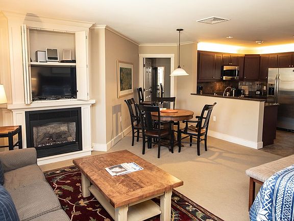 Bixby House is Jackson Gore's only full ownership building. With only four studios in Bixby House, this luxury penthouse unit provides long range valley views, peace and privacy. Enjoy relaxing in front of the cozy fireplace after a fun-filled day on the slopes. The gourmet kitchen features granite countertops, soapstone farmhouse sink, ceramic tile, and stainless appliances. Ownership includes all of the amenities of the Jackson Gore Inn plus owner access to a private lounge with TV, game area and business center. Facilities include underground heated parking, the Inn's indoor/outdoor pool, hot tubs, sauna, steam room, tennis, basketball, walking trails and the Spring House fitness center. There is generous indoor storage plus a ski locker at the top of the Magic Carpet. This unit sleeps four and is offered fully furnished less personals. Pet Friendly.