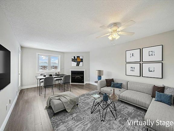 Welcome to the East Hamptons! Very desired condominium complex nestled in mature neighborhood by the lake! This completely renovated condo is located on the 4th floor with southern exposure! Tons of natural sunlight! Stunning kitchen with quartz counter tops, porcelain floor, new cabinetry, under counter lighting, built in dishwasher and backsplash! Generous open concept living room and dining room combo with corner electric fireplace and walkout to balcony! Spacious primary bedroom with double closet and closet organizer! Gleaming easy maintenance laminate flooring in living room/dining room and bedroom! Renovated 4 pc bathroom! Ensuite laundry! Freshly painted in neutral colors, immaculately clean and turn key ready to move in! Includes 2 parking spots (1 underground + 1 surface) and exclusive use of storage locker on main floor! Indoor amenities include pool, hot tub, sauna, exercise and party room! Plus plenty of outdoor amenities to enjoy! Tennis court, basketball, playground, BBQ, picnic tables, gazebos, open green space! Not to mention to the short distance to extensive walking and cycling trails, the incredible Rotary park and the lake! Conveniently located close to shops, restaurants, transit, 401, Go train station, schools and more! Perfect for the first time buyer, investor or someone looking to downsize! This lovely unit will not disappoint you!