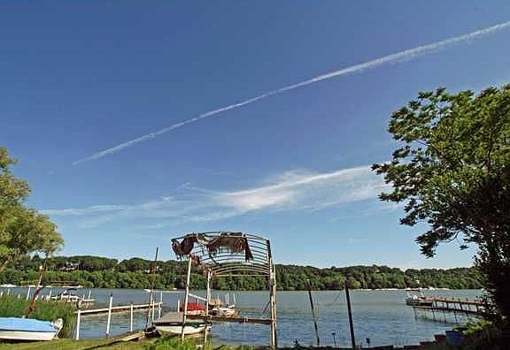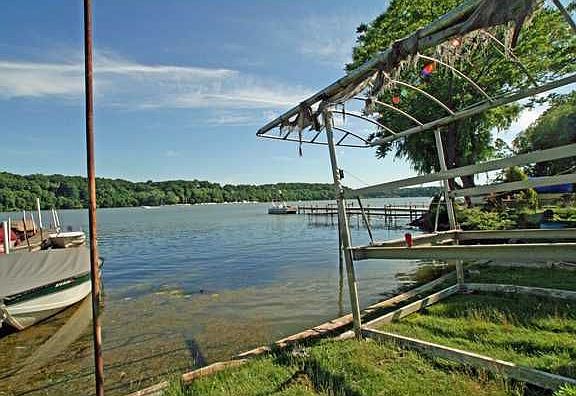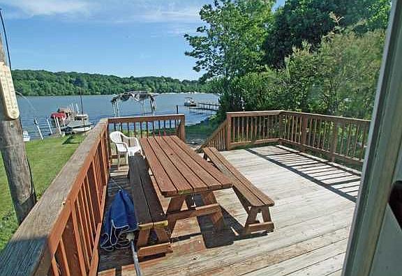 Large family home on water front property! 3 bedrooms on one side, 2 bedrooms on 2nd side. 96 ft. dock, room for 4 boats. Water to water rights. Glass sliding door to deck.