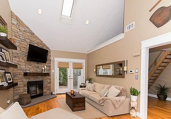 ** MULTIPLE OFFERS-please submit all offers by 6pm Jan. 29th ** Step through the front door into one of the most inviting homes you have ever seen! The gorgeous floor to ceiling custom genuine stone fireplace with blue stone hearth immediately draws to mind cozy evenings sitting by the fire. The kitchen features new cabinetry with under mount lighting, granite countertops with butcher block breakfast bar accent, and stainless steel appliances. Travertine tiled kitchen and entry way through to the hand scraped oak hardwoods were excellent flooring choices. This unique floor plan offers one level living, cathedral ceilings, and a bedroom loft just perfect for storage or perhaps a cozy reading nook! Two skylights, both motorized with remotes and room darkening shades let you control the brightness. Newer Anderson double insulated windows and recessed lighting throughout are details you won't want to miss! Private fenced yard with patio and storage, and this complex is pet friendly too!