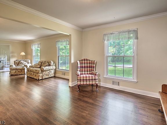 This lovingly maintained and updated expanded ranch boasts 4 bedrooms, 2 full bathrooms and 2 half bathrooms. An idyllic setting perched upon a hill with landscape views from every window. This home has insulated siding, and new shutters and cedar fencing were installed this year. Interior is freshly painted with crown molding throughout the house, wainscoting and built in shelves in the dining room, and built in shelves in the living room and bedroom. Enjoy morning coffee on the new deck, inside the bright and airy family room or in the kitchen with new granite countertops, all overlooking the built-in gunite pool with a new filter. 9 closets and walk-in attic provide ample storage. Ideal location with close proximity to Fox Hollow Golf Club and the Lamington river. Your staycation awaits