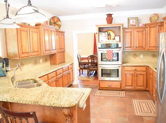 This home has tons of upgrades to include: granite countertops, hardwood flooring, ceramic tile in bathrooms, media room, custom built bar and kitchen upstairs overlooking huge playroom/game room/additional living room, tons of walk in attic space for storage, fireplace, fenced in area in back for your family pets, HUGE parking pad, concrete drive, beautiful landscaping, large formal dining room, breakfast bar, double ovens, stainless steel appliances, rocking chair front porch, much more!!!