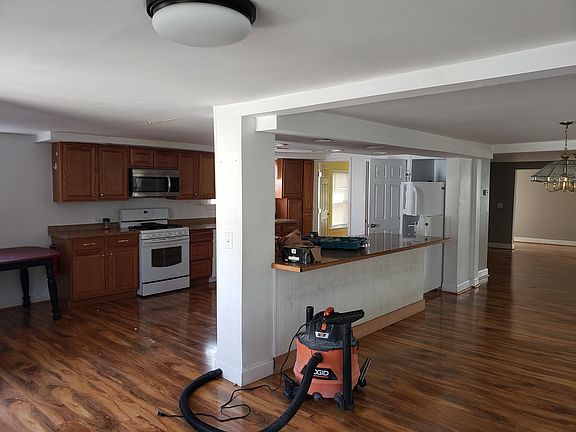 3/4 br 2 ba eat in kitchen microwave, dishwasher, living rm, dining rm, gas heat, central a/c, partially finished basement, back yard.