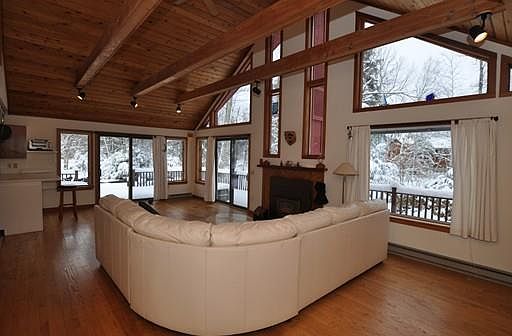 Possibilities abound in this lakefront contemporary featuring 2 wings. The 3 bedroom red wing incorporates an open floor plan, cathedral ceilings, 1st floor master suite, 2nd full bath & deck. In the grey wing - with private front and back entries - the gardener's studio (soapstone counter & sink, woodstove & lake view) could be adapted for use as a 2nd kitchen, artist's studio or wet bar. On the 2nd floor is a large office space with lake view. A spacious entertaining room with ½ bath can be used for extra sleeping quarters. Designed to weather whatever storms may come, the house can be & has been largely self-sufficient with woodstoves, solar hot water & electric