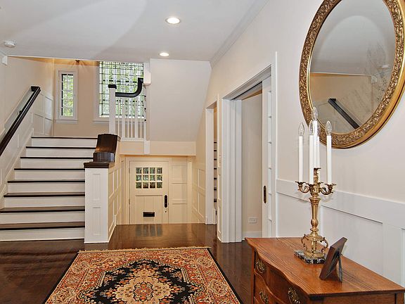 One of Riverside's very special landmark homes designed by the preeminent Chicago architect Charles Whitney Stevens in 1908. The current renovation was completed with particular attention to the original architectural details which include the beautifully restored stained glass windows and B/I lvg rm bookcases. A gourmet kitchen opens to the family room, brk rm, formal dng rm, and livg rm. The many windows allow incredible sunlit views of the grounds and Longcommon park, creating the feeling of bringing the outside in. The wide sweeping stairway with carved prairie style spindles leads to the mstr suite and 2 bdrms which open to a 2nd floor deck. The 3rd flr boasts 2 bdrs with cathedral beamed ceilings. Nestled among the tall oaks, these bedrooms give one the feeling of living in a tree house. The lower level includes an enormous laundry room lined with cabinets, rec room, full bath, lots of storage, & a 4 car gar complete this one of a kind home. No detail has been overlooked.