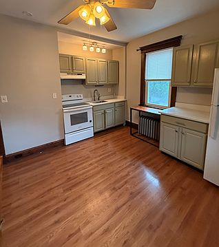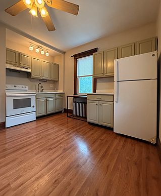 ALL UTILITIES INCLUDED in this Lovely well kept residential property. Recently renovated 2 bedroom apartment with a bonus room. Two levels. Ceiling fans in bedrooms. Washer and dryer included. Spacious kitchen with new range & refrigerator. Lots of storage space. Private off street parking. Only 3 apartments in the building with separate entrances.