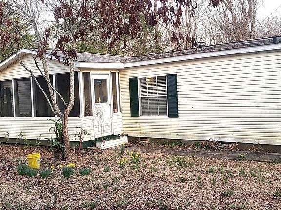 Beautiful mobile home in a great country setting. Fabulous wooded backyard area complete with lots of wildlife. Just inside the side door, is the laundry room. Then you are greeted with a large country blue kitchen. Though the dining room, you will find an extra large living room area. Split floor plan with the master bedroom on one side with 2 more bedrooms and a bath on the other side. The master bedroom has 3 closets and the master bath contains a garden tub and a separate shower Just off the extra large living room to one side, you will find a cozy screened porch. And to the back of the extra large living room, you will find a large deck that also double as a carport. Another mobile home is currently on the 3 acres, but it and 1 acre will be surveyed off. 2 acres will remain with this property. Gas and HVAC are powered by Propane gas. Hot water heater is a month old and the HVAC and roof are around 2 years old. Blinds will remain, curtains will not remain. Outside vinyl siding to be cleaned before closing. The buffet table in the dining room will not remain. A refrigerator will remain, but not the one that is currently there. The birdfeeder out front will not remain. The cinderblocks in the fencing will not remain. The outbuilding which is wired for electricity and is in the fenced area WILL remain but the building to the back will not remain. Property may not be FHA compliant. Property has a permanent foundation but may need an engineering certificate and detitling.