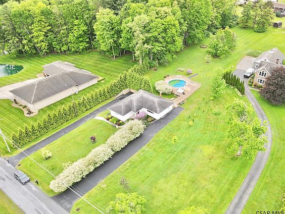 ALL OFFERS DUE by WEDNESDAY, 9/3 7:00PM. Sprawling ranch on beautiful one-acre lot. This deceivingly spacious home offers over 2,500 sq. ft. of finished living space. 4 bedrooms on the main floor, updated full baths on each level & finished lower level featuring rec room w/ fireplace, bonus room/5th bedroom, & oversized laundry w/ porcelain tile flooring, cabinets, washer & dryer. The renovated kitchen is a chef's dream w/granite counters, porcelain floors, breakfast bar, newer high-end appliances, and glass doors to the patio. Newer windows. Outdoor living includes rear deck, patio, hot tub, 24' round solar panel-heated pool w/deck. Sits far off the street with 2 driveways & a 2-car tandem garage. Professionally painted interior Aug, 2025.