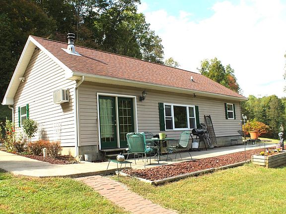 Custom built home sitting on gorgeous partly wooded 8.6 acre land with 1 acre lot fully stocked pond and freshly put in pavement driveway. Small creek running between gently rolling hills. Offers a few beautiful areas to build a new home or cabin. Stainless steel refrigerator, stove, and microwave are included plus washer and dryer! City water, septic, electric, and wood burning stove makes this home ready to move in and enjoy your own little peace of heaven!