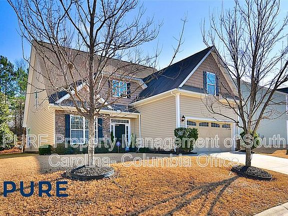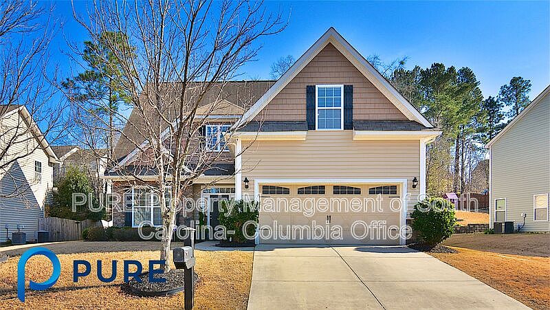 Beautiful 4 bedroom, 2.5 bath home in The Mill subdivision Lexington. Stone-accented facade, covered front porch, 2-car garage w/ carriage-style door, and relaxing backyard space w/ a patio, sunshades, and decorative lighting. Real hardwood floors and wainscoting molding in the soaring two-story foyer and formal dining room. The spacious kitchen boasts granite counter tops, a pantry and bar counter open to the eat-in dining area. Included stainless steel smooth-top stove, built-in microwave, dishwasher, and side-by-side refrigerator. Natural light filled family room has 2-story ceilings. Master suite on main level has a box ceiling, ceiling fan, and full bathroom with double sinks, garden tub, separate shower, and walk-in closet. Sitting area and catwalk overlooking family room on the 2nd floor landing. Three additional bedrooms and a 2nd full bathroom also upstairs. 4th bedroom is a large bonus room w/ closet also perfect for office, playroom, or recreation room. Convenient to I-20, Downtown Lexington amenities/shopping, and Lake Murray. Lexington 1 schools. All PURE Property Management residents are enrolled in the Resident Benefits Package (RBP) which includes renters insurance, HVAC air filter delivery (for applicable properties), credit building to help boost your credit score with timely rent payments, $1M Identity Protection, move-in concierge service making utility connection and home service setup a breeze during your move-in, our best-in-class resident rewards program, and much more! More details upon application. Amenities: pantry, backyard with patio, garage, hardwood floor, granite countertop, formal dining room, covered porch, bar counter