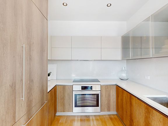 This super modern one-bedroom apartment has everything you need high ceilings, floor-to-ceiling Pella windows that bring in tons of sunlight, and your own private balcony. The sleek Italian Stosa kitchen is outfitted with high-end Bosch and Blomberg appliances, perfect for cooking at home. White oak hardwood floors run throughout, and the spacious bathroom features a raindrop shower head for a relaxing, spa-like vibe. You'll also have your own washer/dryer, central air, and a video intercom. The building includes a shared roof deck and private storage in the basement. Located just half a block from the Wilson Ave L train and 5 blocks to the Chauncey J/Z super easy for commuting. Please note: the unit is unfurnished. APPLICANTS MUST HAVE GOOD CREDIT!!