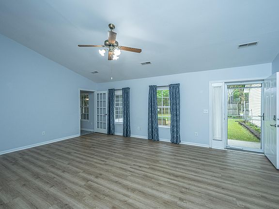 Brand New Roof Installed March 2024! This lovely updated 1 story home has it all. As you enter you will notice the newer LVP flooring throughout the bright and large living room (popcorn ceiling removed), and recently fresh paint throughout the home (walls and ceilings). The kitchen has been updated with gorgeous quartz countertops, new hardware on cabinets, black SS appliances, deep sink with a new faucet, painted cabinets, ceramic/mosaic backsplash and new recessed lighting. The kitchen offers tons of cabinet space and countertop space and has pull out storage and organizers for everyday use. The formal dining room off the kitchen is spacious for the whole family and complete with chair rail for added elegance. The master bedroom is split from the other bedrooms.(The 4th bedroom is small with a smaller closet, so ideal for an office or nursery). Both bathrooms have new quartz counter tops, painted cabinets, new hardware and faucets. The master bathroom is spacious, with dual vanities, garden style tub/shower, new fixtures and has a large linen closet. You will also find a large sun room with a free standing stove that can be used as a play room, media room, etc and a vinyl window attached screened in porch that leads you to the back yard. The large fenced in yard is the perfect size for family gatherings. The detached 2 car garage has work benches, extra lighting and some storage space above and attached by a breezeway to the main home. The yard will bloom with tons of color and flowers in the coming months including crepe myrtle trees, azalea bushes and more! Sunburst Lakes offers a community pool, playground and RV/Boat storage area (to store RV/Boat there may be a waiting list). This community is close to shopping, restaurants and Historic Downtown Summerville where the Town of Summerville hosts plenty of events throughout the year. Washer/Dryer to convey in as-is condition with acceptable offer. Storage cabinets in dining area and in sunroom convey.