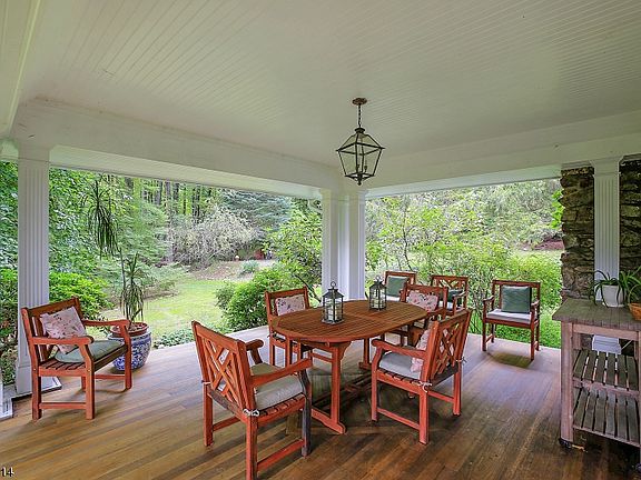 A piece of Mendham history, Buttonwood Manor is a charming and lovingly cared-for colonial home offering privacy and gracious spaces for entertaining and everyday living. The spacious foyer welcomes you and offers access to the beautiful living and dining rooms. The updated kitchen features a separate dining area and is open to the sun-filled family room. A large master suite with an office, sitting area, and dual baths is perfect for today's lifestyle. The large family room has a gas fireplace, 3 additional bedrooms, and a sunroom complement the second level. An expansive front porch is ideal for enjoying views of the spring-fed pond and vistas beyond. A second-floor family room could be used as a 5th bedroom. An in-ground, heated pool and two barns complement this iconic property.