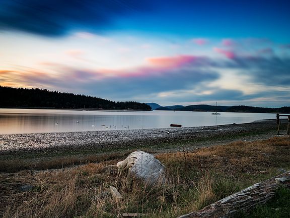 ON THE EDGE OF THE BAY is this 3 bedroom, 3 bath spacious rambler. Expansive views of Mud Bay and Lopez Sound from this sunny 1+ac. New roof, windows, remodeled baths, radiant heat and more. Extensive patio is steps from the beach. You will never tire of watching the summer sunsets and boats on the bay. Adjacent wetlands adds privacy. Attached garage w/lots of storage. Great crabbing area. Walk out beach is easy access for kayaks and skiffs. Includes tidelands.