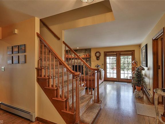 Multiple Offers - Highest & Best by Tuesday 3/19 @ 8 PM. This quality built 4 BR, 2.5 bath Colonial situated on over an acre in the Nazareth School District has pride of ownership & attention to detail. Stepping inside, you are greeted with hardwood floors that flow throughout the home. Open staircase & center hall leads into the spacious eat-in kitchen featuring Stofanak cabinets & classic black granite countertops w/center island. The family room is a cozy retreat with a wood burning fireplace surrounded by built-in bookshelves, from there you can enter into a lovely sunroom encased in windows w/a mini split for heating &air with a doorway leading to a large Trex deck with electric awning, large patio, lovely landscaping, shed & fenced-in area. Plenty of space to entertain with a large living room & dining room. Too many features to list! Spectacular views from every window in the home! Upstairs you will find a large master BR with cathedral ceilings, walk-in closet plus an additional room w/French doors used as an office/nursery. 3 large bedrooms for a growing family. 2 full baths w/glass doors & tile and dual sink vanities. Plenty of closets & storage, including a walk-up attic w/lots of possibilities. Finished rec room in the lower level w/workshop, lots of storage & a walk-up to the 2+ car garage, 4 zone oil heat, 2 zone C/A,ADT security,& more.