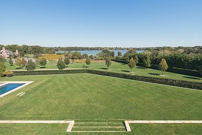 Spacious and beautifully appointed traditional with guest house and pool house, stunning views of Mill Pond, multiple entertaining areas and all the bells and whistles. Featuring a grand gourmet kitchen, formal dining room, family room, living room, office, den/entertaining room with bar, media room, 7 en suite bedrooms in main house, including two masters, 3 half baths. The private guest house has two additional bedrooms with 1.5 bathrooms, kitchen and living space. There is a fully equipped gym on the 2nd soltory overlooking Mill Pond. Pool house includes loft area with kitchen, and bathroom. Finished lower level features a 9 hole putting course. Also includes tennis, gunite pool and spa,on 4 gorgeous acres. Conveniently located close to town and beaches, 10 minutes to Shinnecock.