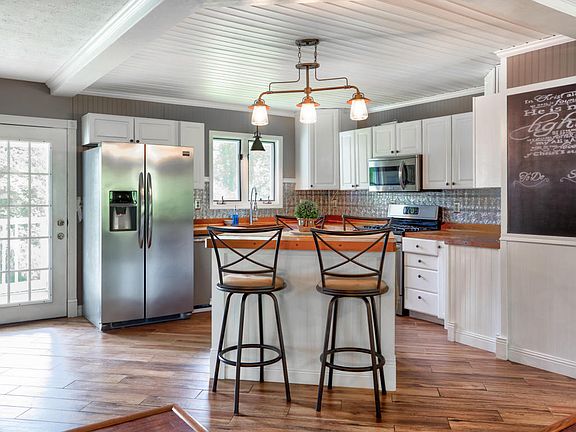 Spacious home with large open floor plan living room and dining room. Kitchen opens to covered porch w fenced rear yard. Basement features separate living quarters and 2 car garage. Detached 32 x 32 garage offers loft area ( unfinished) with ample storage and 3 bay doors.