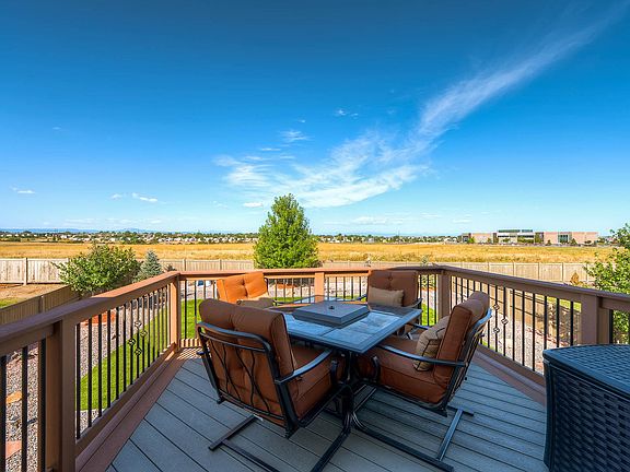 Panoramic Mountain Views and backing to open space this beautiful 3 Bdrm+ Loft home will not last. Open Floor-plan is an entertainers dream. Spacious Kitchen features 42" cabinets & stainless steel appliances. The refrigerator is included! Upper Loft is perfect as a 2nd living area or can be easily converted to a 4th bedroom. Formal Living Room/Dining Room share a 2 sided fireplace with the family room. Expansive covered composite deck, wood burning fire pit and large private backyard are perfect for outdoor entertaining. Don't miss the AMAZING deck off the master bedroom - you will LOVE the Rocky Mountain views! Upgraded turf backyard is easy to maintain. This home is a true 10!