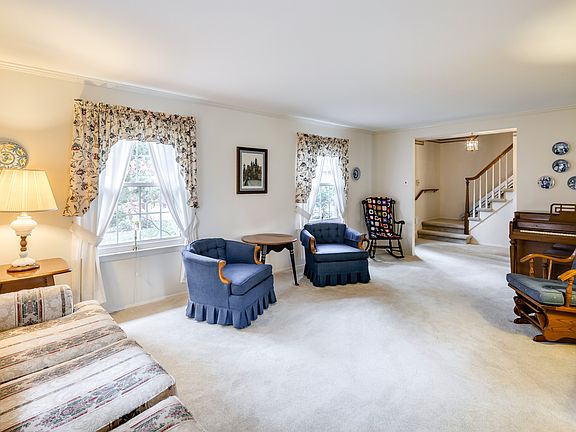A lovely brick walkway and front porch provide a welcoming entry to this expanded "New" Salem model with a rare 2 car garage in Barclay Farm. This home has been lovingly maintained and updated by the current owners. The interior has a neutral palette and could easily accommodate any decorating style. The living room is gracious and benefits from the bay window in the adjoining dining room for lots of natural sunlight. The eat-in kitchen was nicely updated not long ago and features oak cabinets, lots of counter space and 2 pantry closets. Step down into the large family room which features a charming brick wall fireplace and an added garden window. Both the kitchen and family room have sliding doors to an attractive sun porch with a vaulted ceiling. From here, you can access the gorgeous large brick patio, or just sit inside and enjoy the lovely backyard gardens. Adjacent to the family room is a separate laundry room, a half bath that was nicely updated, and access to the 2 car garage. Upstairs, the master suite comes with a walk in closet and a nicely remodeled master bath. The remaining 2 bedrooms are both a well sized and share the main half bath. A huge closet off the 2ndlevel, over the garage, is currently used for storage but provides the space if one desired a 4th bedroom in the future. You will love being able to walk to A. Russell Knight elementary school, Croft Farm, and the tot soccer fields from this excellent location that is close to everything!