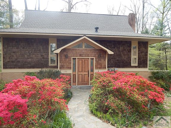 Essentially In-town, without In-town price. Magical, 1.4 acre, Calloway Gardens style landscape, with creek, footbridge, and a resplendent array of trees, shrubs, perennials, wildlife ( the tree frogs can seem like an mighty orchestra ). Perfect for the Master Gardener, Seeker of Magical Places, or anyone in need of a convenient in-town Sanctuary. This 3-level, 3,012' Chalet-style home, with Japanese-Craftsman influenced architectural elements { Pagoda-style roof, cedar shake siding ) features 5 BR/3.5 Bath, 4 common living areas, including a library area/classroom space, and there's the option to use the ground level as an in-law Suite, or Airb&b/rental income. The entire middle floor consists of an open floor-plan that consists of a stylish retro kitchen, and common living spaces, with wood-burning fireplace, and ope to a huge deck with tree-canopy, vista views. An abundance of windows & natural light are omnipresent throughput house. There are several fireplaces, including a wood stove. The Master suite has a private door to an immense 2nd tier deck built around an ancient and wise tree, and with a small pool recessed into deck, all of which overlooks a truly amazing, Private green expanse. This is a rare property, not easily or often found in Athens, and will likely not last long.