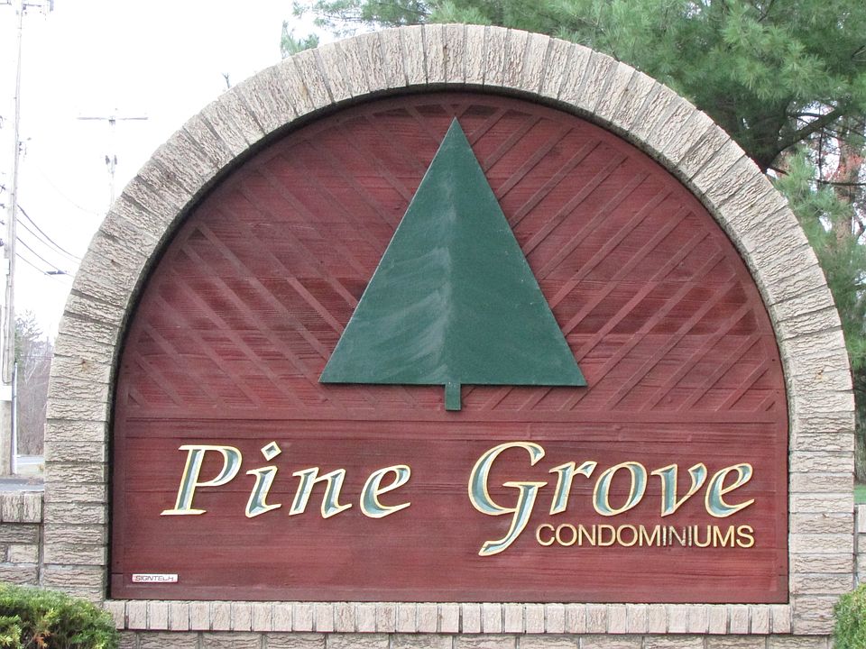 UNDER CONTRACT Very desirable first floor garden end unit at beautifully landscaped and quiet setting of Pine Grove. Open floor plan, 2 sunny bedrooms with large closets, 1.5 baths with laundry area. 1-car garage just steps off the private deck. Large basement for storage. All appliances included. Pine Grove is conveniently located and features a beautiful club house, 2 in-ground pools and tennis courts. Back deck floor to be replaced with Trex in summer 2019. Priced right!
