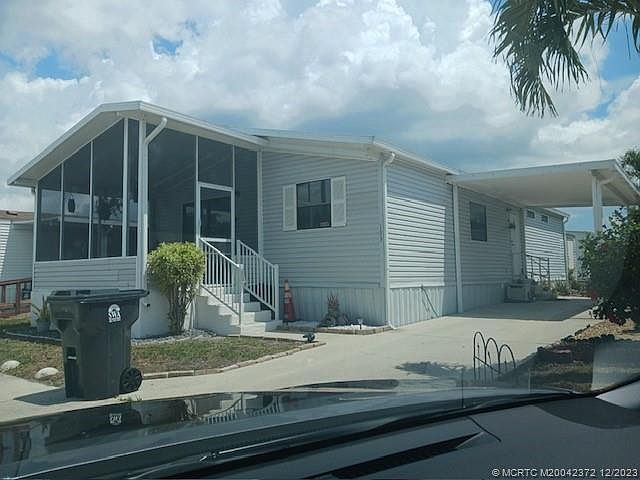 Just Listed ! Palm Beach Plantation 2 bedroom 2bath home with attached carport and large storage shed .Open floor plan, large bedrooms, bamboo wood floor in the master bedroom, laminate flooring in the other areas. Large Florida room off the living room. Interior laundry room with extra storage and counter. All age community with excellent schools. Community offers a Clubhouse, pool, fitness, basketball, soccer fields and playground, large lake for fishing.