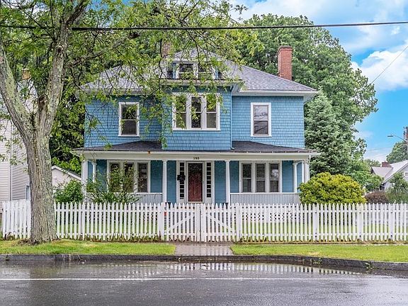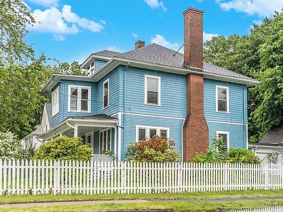 This classic Holyoke Highlands home exudes elegance and charm from the moment you step through the front door! The large, bright foyer features gorgeous natural woodwork and 2 large closets. A front to back living room offers a fireplace and wood floors to match the majority of the house. French doors from the foyer lead you into a generously sized dining room. You'll pass through the butler's pantry with built ins galore into the sunny kitchen with a breakfast bar. The mudroom off of the kitchen is just waiting for your ideas! A half bath completes the 1st floor. Upstairs are 4 spacious bedrooms (one with a walk in closet!) and a full bath, complete with a clawfoot tub. The walkup attic is great for extra storage. You'll love sitting on the expansive front porch overlooking your fenced yard. A barn/carriage house provides 2 garage spaces and plenty of room for storage, a workshop or gardening. Crown molding, abundant closet space & gorgeous woodwork and floors make this house a win!