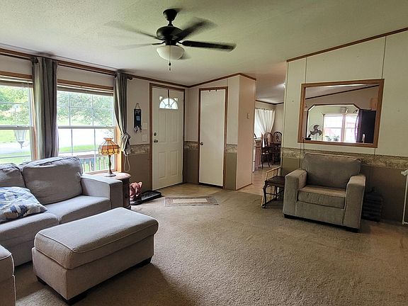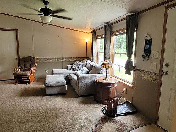 This 3 bedroom, 2 full bath home sits on 1 acre with 2 sheds for storage - 8x10 and 10x14, both with double entrance doors. Small brook that borders the property. The open floor plan is great for get-togethers. Expansion to family room with pellet stove or open deck is possible if more room is needed. Large windows for natural lighting. Metal roof.