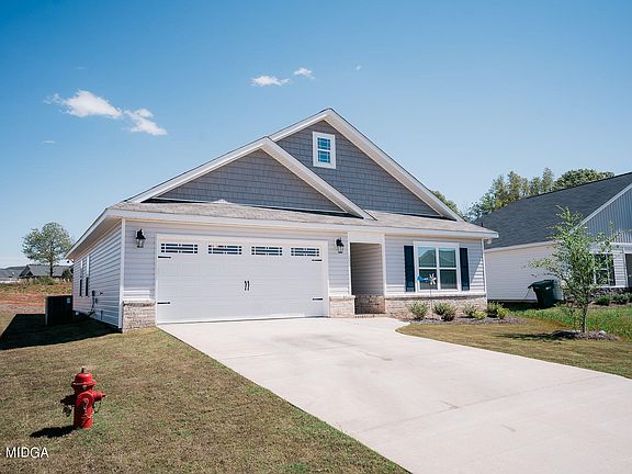 SAY YES to the beautiful Douglas Plan! If you're looking for a quality-built house, you're in luck. This home qualifies for 100%USDA financing. The Douglas plan is unique and features stunning stone accents with easy maintenance vinyl siding. Inside, the open floor plan with durable luxury vinyl plank flooring in the foyer, dining area, great room, and kitchen is sure to impress.The kitchen boasts a large island, beautiful cabinetry, granite countertops, breakfast bar, pantry, and stainless steel appliances.The private primary bedroom features an oversized closet with a dual vanity bath, marble countertops, decorative mirrors, and a garden tub/shower combo. The spacious guest bedrooms have nice closets and hall baths, and offer dual vanity. The bathrooms and laundry room have beautiful tile floors, while the bedrooms have carpets. You can relax on the covered back porch overlooking the OVERSIZED backyard!The 2-car garage is a bonus. Don't miss this opportunity to own this Douglas home.Give us a call today to schedule your tour