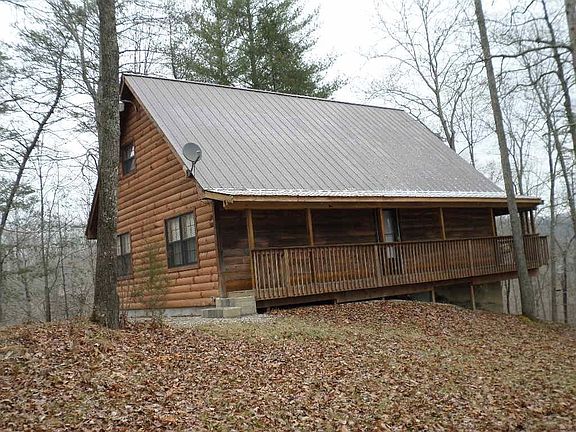Breath taking is the only way to describe the view of cave run lake from the front porch of this home. Relax and enjoy one of the most peaceful setting that there is around the lake. 1/2 mile to Beaver creek boat ramp and Long bow marina. This 1.5 story log siding home offers an open floor plan with two bed rooms and a full bath down stairs and a kitchen and rec. room combo. upstairs has one bed room and a full bath. Carpet and tile flooring that looks like it has never been used! utility area. covered porches and a double wooded lot. oh yes it comes fully furnished! wont last long