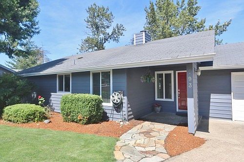 Great opportunity in Thurston. Nice cul-de-sac location with large, fenced backyard and covered deck. Lots of room for garden, dog run and MORE. RV Parking with gated access. Vaulted ceilings, laminate flooring with carpet in bedrooms, dual entry bath from Master. All kitchen appliances included, large pantry and breakfast bar. Large garage has utility sink and washer & dryer included. Close to parks, schools and SPLASH. Swim Center.