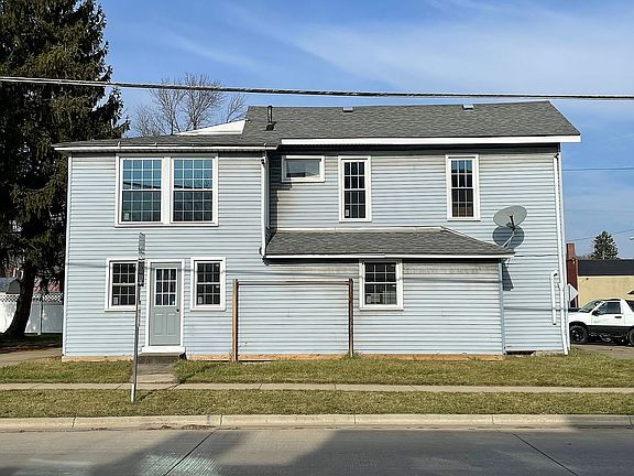 Built in 1900, a former quilt shop and most recently a rented duplex, this 6 bedroom (3 finished), 2.5 bath is in need of renovation/remodel. Can be used commercially, as a residence, or to rent as a possible duplex. Each floor has its own kitchen. The first floor kitchen is recently redone with huge pantry, new cabinets, and new flooring. All new windows throughout house. Some of the original floors have been patched and are in need of repair (see photos). The first floor also has a newly renovated bathroom. The second floor is in need of complete renovation. Concrete parking in both the front and back of this sprawling two story home with central air. Recent work has been done to foundation. Foundation is not compromised but original stone/dirt basement had some water leak in and a cylinder block wall was put up to reinforce. Some original doors, light fixtures, and windows are included. Located on a corner lot leading into historic downtown Shreve Ohio.